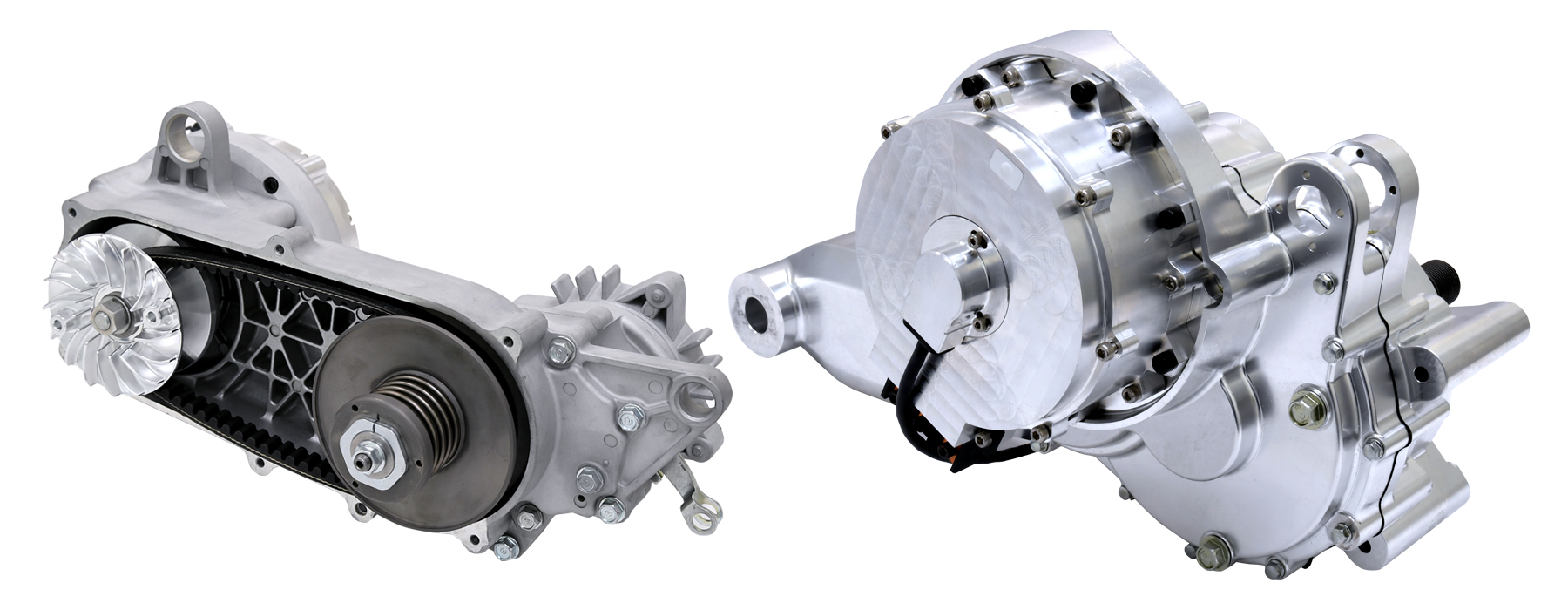 電動化の加速する二輪・三輪市場に、エクセディの持つ動力伝達技術とモータ・インバータを組み合わせた、3in1のシステムを提供するものです。動力の伝達・遮断機能、トルク増幅機能によりモータ出力を抑えることでユーザーニーズ(走破性・乗り心地)を確保する事ができ、小型・軽量で低コストな商品を実現します。CVTと2段変速のユニットの2種類を開発しています。