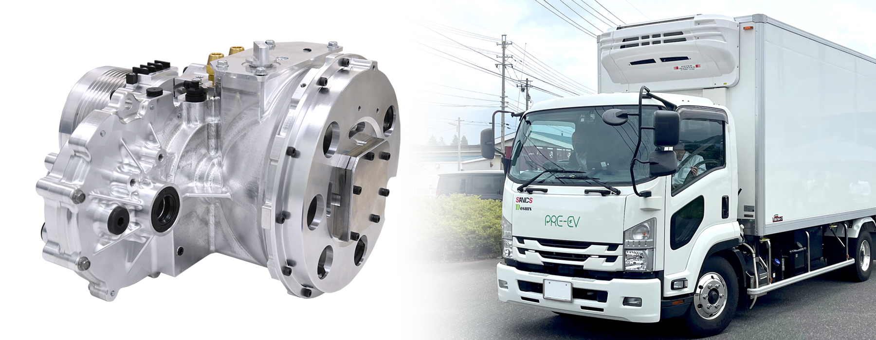 大型モータメーカーの川俣精機、電動トラックのモビリティシステムを開発しているPRE-EVモビリティ社と協業し、事業化に向けて進めています。